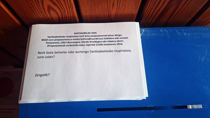 "Nork bota beharko luke aurtengo Santixabeletako txupinazoa, zure ustez?". Galdera horri erantzuteko aukera duzue jada maiatzaren 19ra arte.
