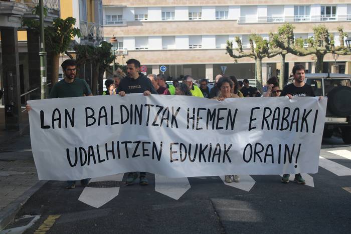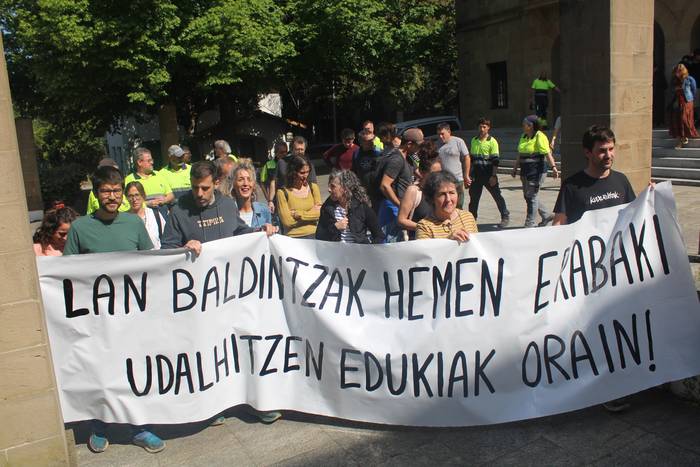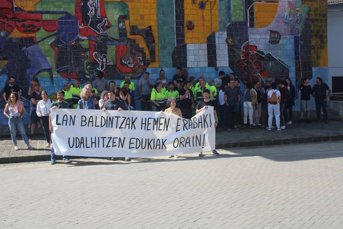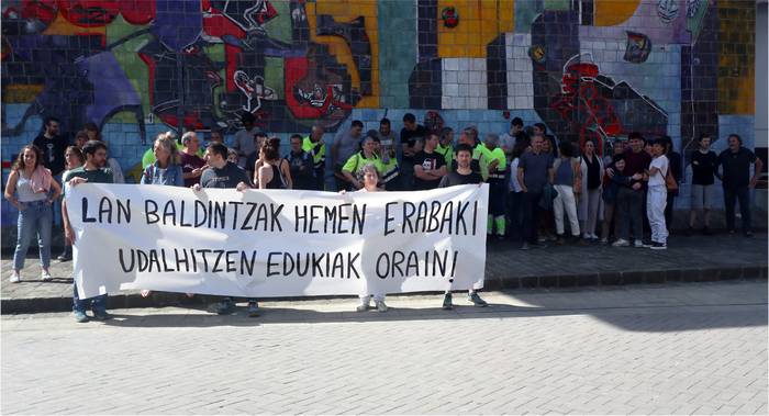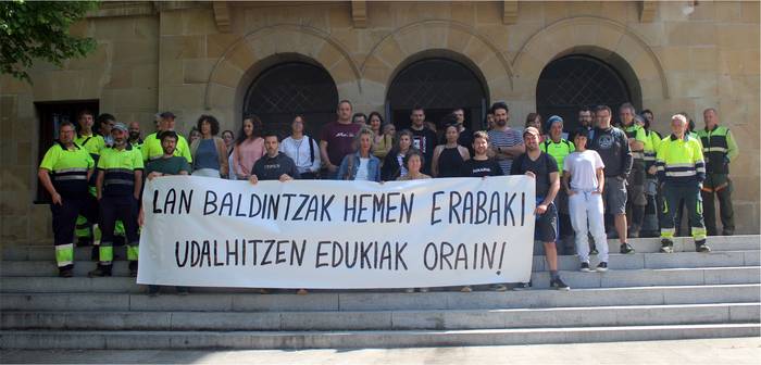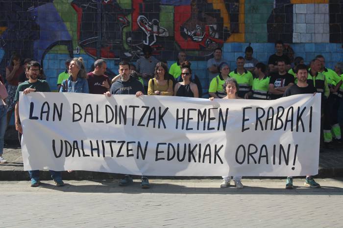 "Udalhitzeko negoziazioa hasi eta ia urte eta erdi pasa denean, langileen aldarrikapenak ez daude mahai gainean. EUDELek eduki eskasak jarri ditu mahai gainean eta, orokorrean, konkreziorik gabekoak dira. Udalhitzen kanpo dauden udaletan (hiriburuak eta udal handiak, gehienbat) gauza bera gertatzen ari da. Orokorrean, urte asko daramatzagu lan-baldintzak hobetuko dituen akordiorik gabe eta mahai gehienak ez daude martxan. Hala, udaletako langileon lan-baldintzak okertzen ari dira urtez urte", salatu zuten aipatu bi sindikatuek, hilabete hasieran eginiko agerraldian.