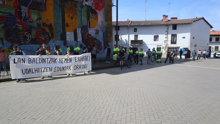 Testuinguru horretan deitu dituzte ostegun honetarako bi orduko lanuzteak ELA eta LAB sindikatuek udaletan. Horiekin bat egin dute Usurbilgo udal langileek ere. Lehenbizi, udaletxe atarian bildu dira, "lan-baldintzak hemen erabaki. Udalhitzen erabakiak orain!" aldarripean. Adierazpena plazaratu ostean, handik gero Mikel Laboa plazara joan dira.