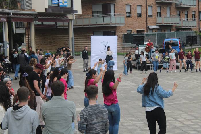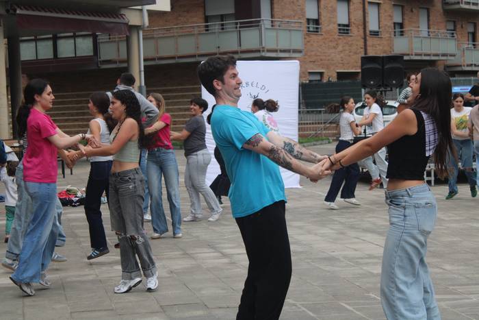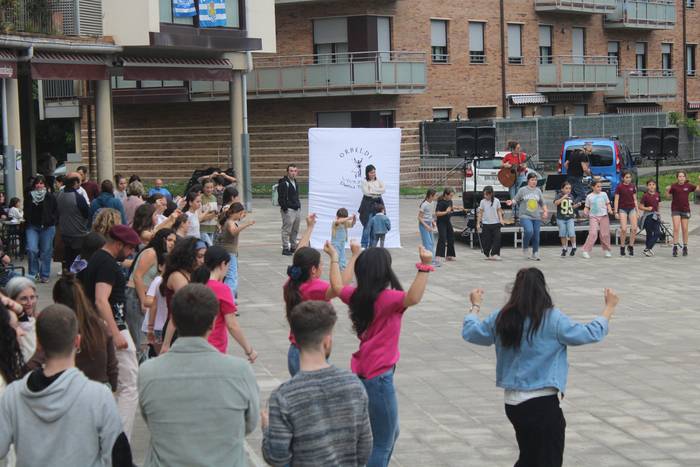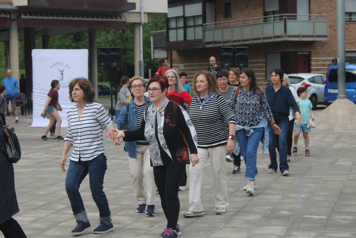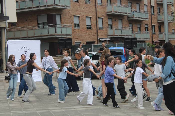 Banaka, binaka, taldean eta askotariko estiloetan. Erromeria giro bizia piztu du Orbeldiren 14. Dantza Egunak larunbat arratsalde honetan, apirilaren 25ean, Artzabalgo plazan. Harkaitz Allur eta Maddalen Arzallus aritu dira dantzaldia musikatzen.