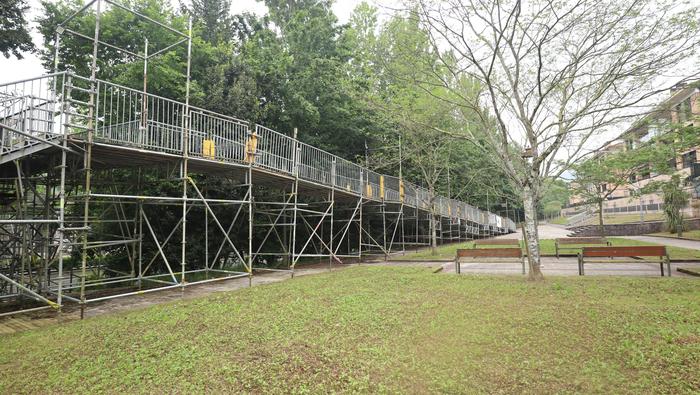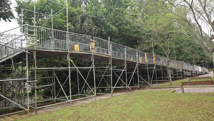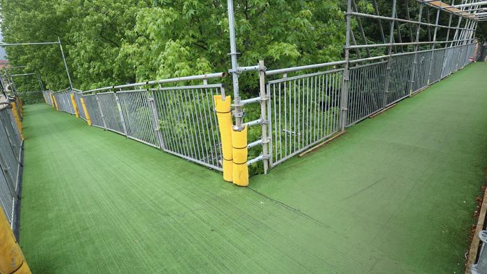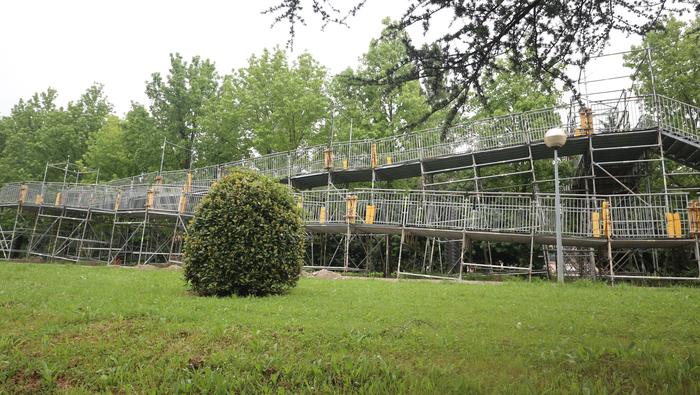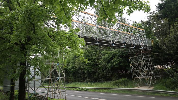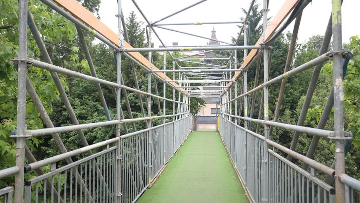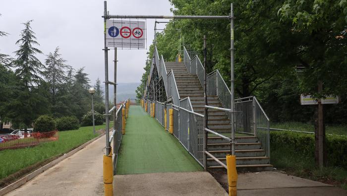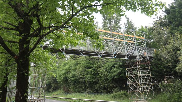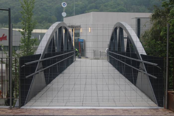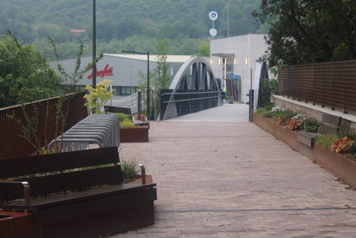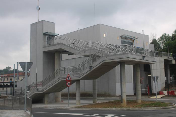 Nahi baino denbora gehiagoz izan da zabalik N634 errepidea zeharkatzeko behin-behineko zubia. Aipatu moduan ia bi urtez egon da, nahiz hamar hilabeterako beharko zela aurreikusia izan. Iaz jarri zuten Etxealdiako zubi berria "baina ez dute irekitzerik izan, irisgarritasun baldintzak bete arte. Tren geltoki berriak bi modutara lotuko ditu goiko eta beheko zatiak: eskailerekin eta igogailuekin. Igogailuak lau izango dira: bi geltoki barruan daude, nasetara sartzeko, eta beste bi kanpoan, Zumartegi industriagunearekin, Santuenearekin eta Atallurekin lotura egiteko. Kaleko bi igogailuak martxan jarrita eta irisgarritasun baldintzak beteta irekiko da, azkenik, zubi berria, bi urteren ondoren".