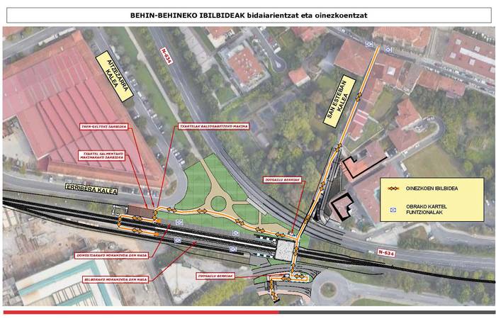 Aldiz, zubi horretatik oraindik ezingo gara jaitsi tren-geltoki berrira; ez eskaileretatik ezta igogailuen bidez ere. "Geltoki zaharraren ondotik sartu beharko da nasetara", Udaletik ohartarazi dutenez. Segidan duzue, tren-geltokira iristeko egin beharko den bidearen mapa. Aipatu moduan, geltoki berria ireki aurreko azken pausoetakoa izango da. "Tren-geltoki berria ez dago martxan jartzeko prest oraindik", Udaletik gogorarazi dutenez.