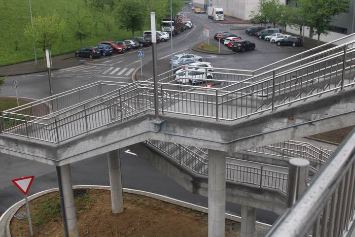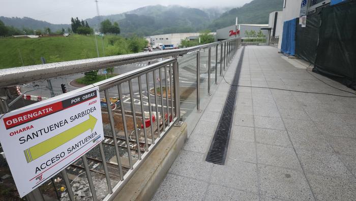 Nahi baino denbora gehiagoz izan da zabalik N634 errepidea zeharkatzeko behin-behineko zubia. Aipatu moduan ia bi urtez egon da, nahiz hamar hilabeterako beharko zela aurreikusia izan. Iaz jarri zuten Etxealdiako zubi berria "baina ez dute irekitzerik izan, irisgarritasun baldintzak bete arte. Tren geltoki berriak bi modutara lotuko ditu goiko eta beheko zatiak: eskailerekin eta igogailuekin. Igogailuak lau izango dira: bi geltoki barruan daude, nasetara sartzeko, eta beste bi kanpoan, Zumartegi industriagunearekin, Santuenearekin eta Atallurekin lotura egiteko. Kaleko bi igogailuak martxan jarrita eta irisgarritasun baldintzak beteta irekiko da, azkenik, zubi berria, bi urteren ondoren".
