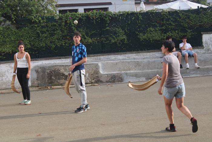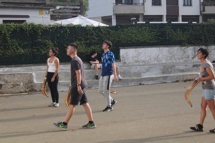 Eta proba egitera animatu ziren bai, haurrak, gazteak, edota helduak. Errebote plazaren bi muturretan kokatuak dauden hormak baliatu zituzten, talde handiago zein txikiagoan trebatze esperimental honetarako. Bidelagun izan zituzten, gainera, Zubieta Pilota Elkarteko kideak. Joko arauak azaltzen aritu ziren, jarduera honetan aritzeko teknika irakasten, baina garrantzitsuena dena, tarte atsegin bat bizi eta zer ikasia badugun jarduera sakonago ezagutarazten.