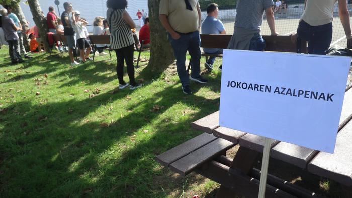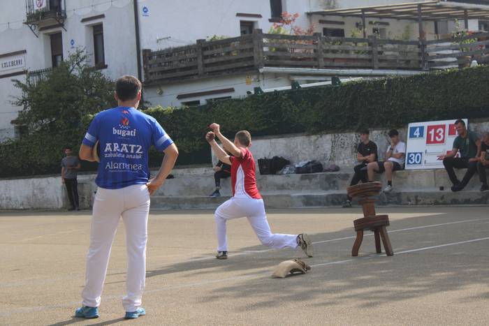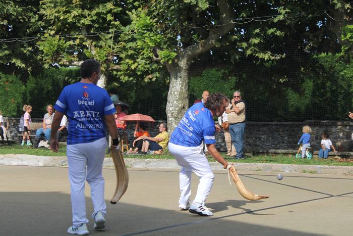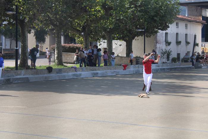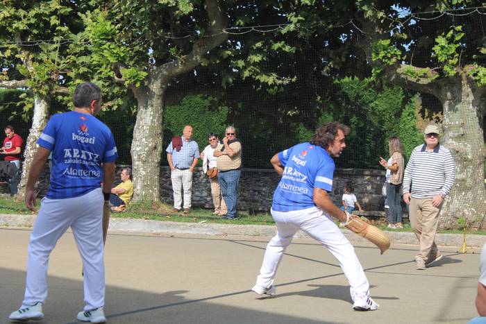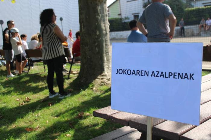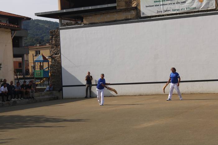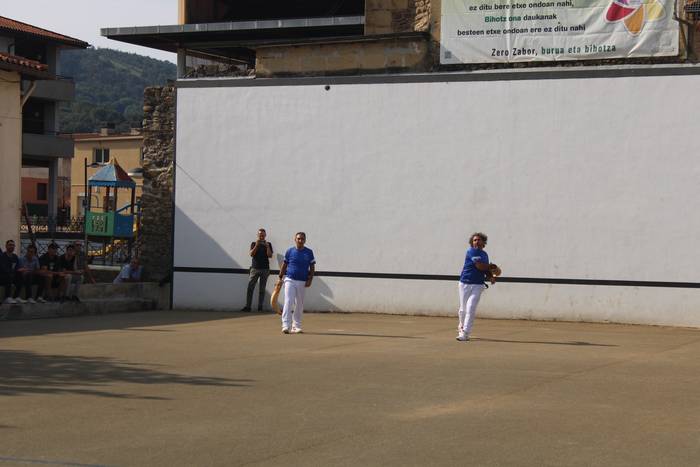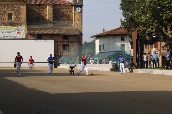 Normalean, neurketa bakarra jokatzen dute, gaurkoa, alde horretatik, ezohiko igandea izan da. Izan ere, bi partida jokatu dituzte, bietan Zubietako taldeek parte hartu dute. Baina horrez gain, berezia izan da baita ere hitzordua. Errebote plaza ondora hurbildu direnak "jokoaren azalpenak" dioen kartelekin egin dute topo.