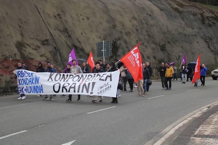 Aldaketarik ez, izatekotan atzerapausorik ere izan dela salatu dute, urte hasieran mobilizatzen hasi zirenetik konponbide eske ari diren Zubietako erraustegiko langileek. Beste behin, bi orduko lanuztea egin dute ostegun honetan, martxoaren 26an. Urbaser, Ekondakin, GHK eta Aldundiari zuzenduriko "konponbidea orain" aldarripean, manifestazioan irten dira lantoki ataritik hara igotzeko sarbidea den Bugatiko gasolindegi ondoko biribilgunerantz. Aurrekoan egin bezalaxe, itzulia eman diote ibilbide horri eta abiapuntuan amaitu dute manifestazioa, lantoki atarian.