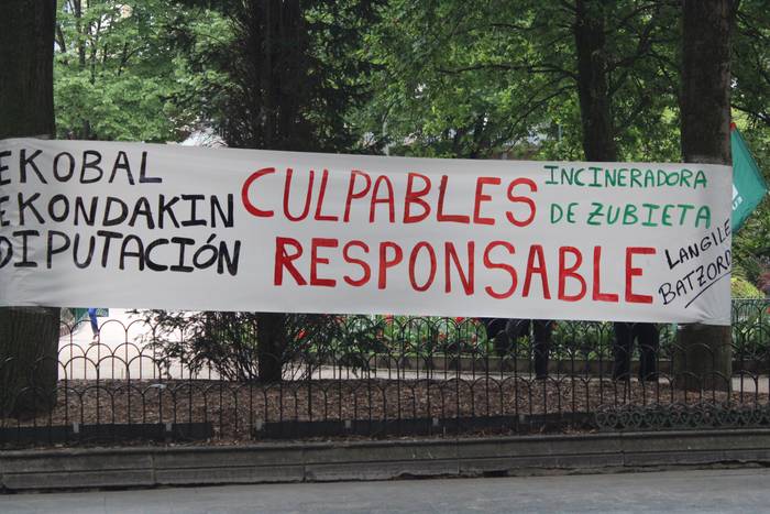 Hilabeteotan, Zubietako erraustegi inguruan oihukatutako eskaerak, salatutako egoera bera plazaratu dute gaurkoan, hiriburu erdigunean bertan. "Gure osasuna bermatu!", oihukatu dute sarritan, lan-baldintza duinak behin eta berriz galdegitearekin batera, alarma hotsen artean. Benetako toxikotasuna ez dietela aitortzen salatu dute gaurkoan ere. Langileen batzordeak bizi duten egoeraren erantzuletzat jo dute erraustegia kudeaturiko enpresak nahiz Gipuzkoako Foru Aldundia.